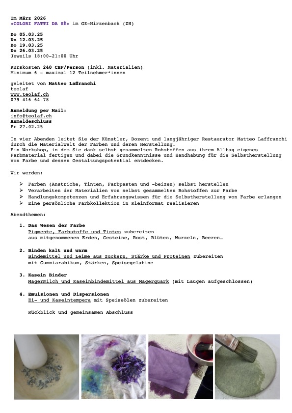 Workshop an 4 Abenden zur Farbherstellung