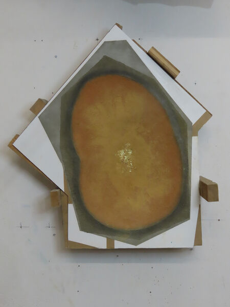 Cuordibue (Ex Voto), 2016 MDF, Papier, Gips, diverse Binder, Pigmente / 34 x 28 x 17 cm