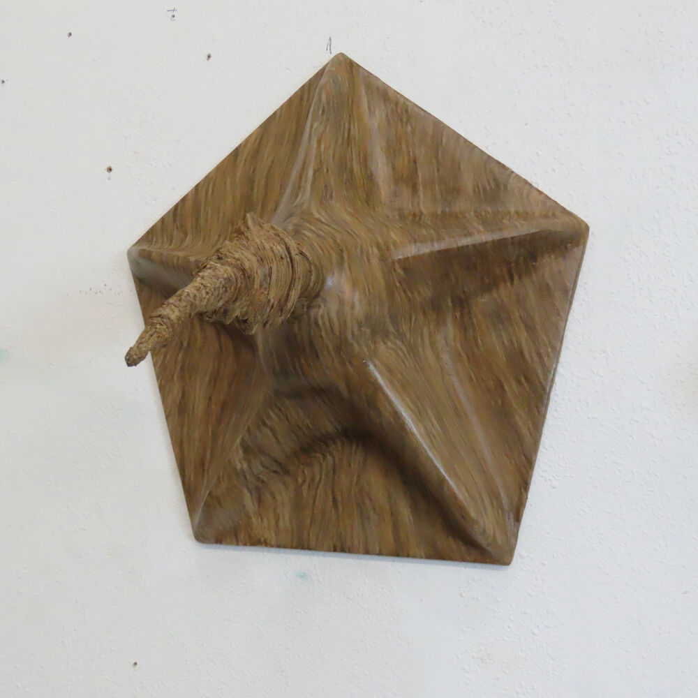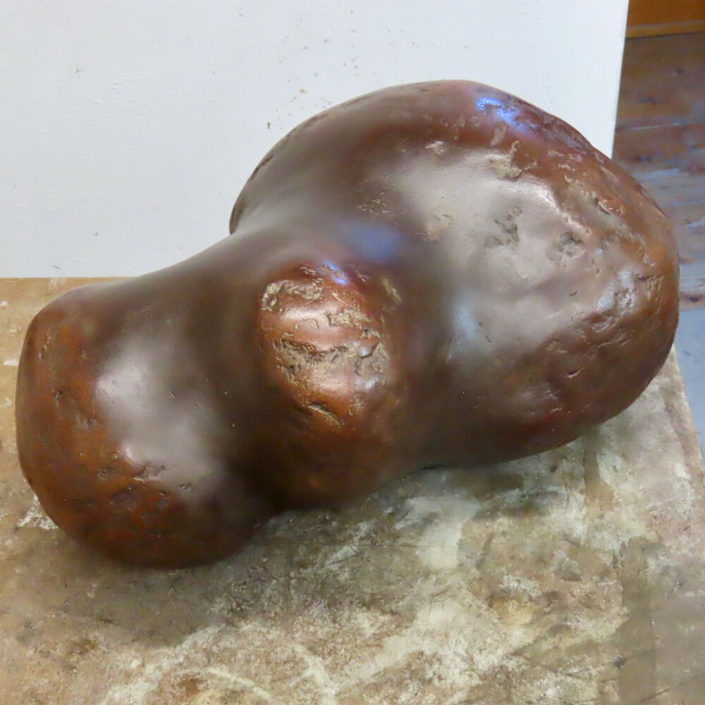 Glücksbohne, 2016 Holz, Karton, Papier, Leintücher, Schnur, Gips, diverse Binder, Pigmente / 74 x 57 x 36 cm (mit Sockel) Privatsammlung