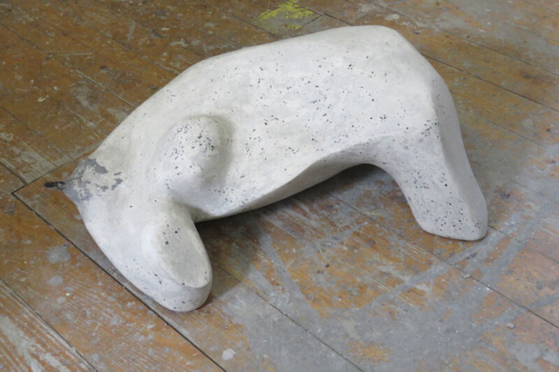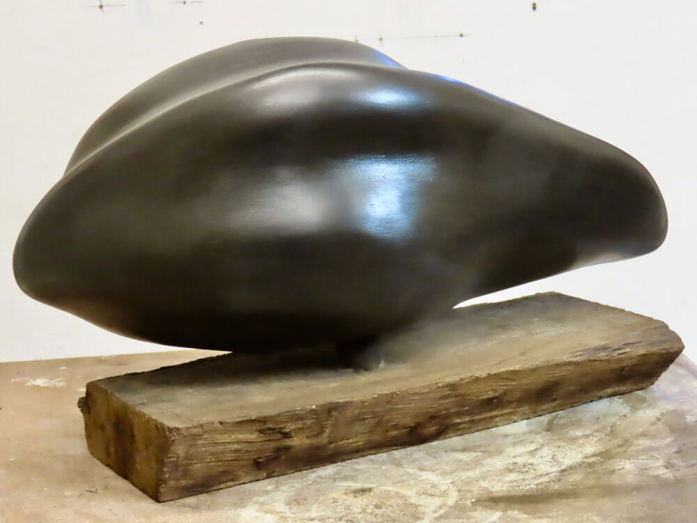 Pantoffeltier, 2014 Pressspanplatte, Holzkohle, Asche, Altpapier, Sumpfkalk, Zement, Kasein / 64 x 39 x 5 cm Privatsammlung
