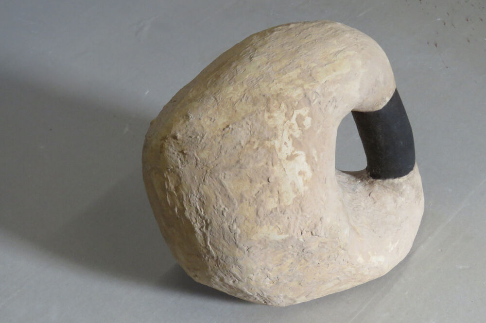 Trophäe, 2011 Strech-Baumwolle, Karton, Zeitungspapierstäbchen, Schnur, Zement, Gips, Leim, Silikatbinder, Pigmente / 42 x 39 x 41 cm Privatsammlung